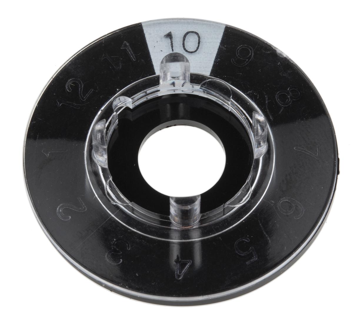 This is Potentiometer Knob Skirt Body: Black for use with knob Dia. 35mm with a White Indicator manufactured by RS Pro. The manufacturer part number is 581-969. The product is made from highly stable and reliable plastic.