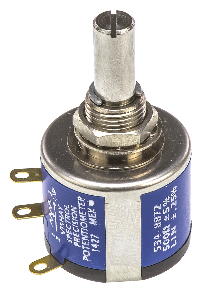 This is 534 Series Wirewound Potentiometer with a 6 mm Dia. Shaft 10-Turn 500Ω ±5% 2W ±20ppm/°C Panel Mount manufactured by Vishay. The manufacturer part number is 534B1501JC8872. The product is available in panel mount configuration. The product 534, is a highly preferred choice for users. Moreover, it has solder lug terminal style. It comprises 1 gangs. Consist of 10 turns. The product carries slotted shaft actuator. It features ±5% of tolerance value.