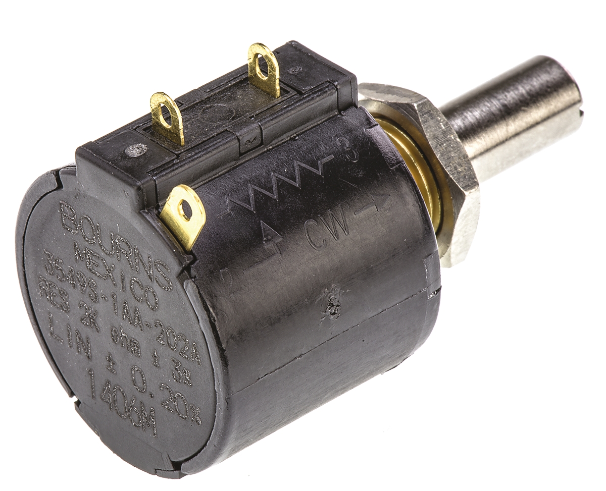 This is 3549 Series Wirewound Potentiometer with a 6.35 mm Dia. Shaft 10-Turn 2kΩ ±3% 2W ±50ppm/°C Panel Mount manufactured by Bourns. The manufacturer part number is 3549S-1AA-202A. The product is available in panel mount configuration. The product 3549, is a highly preferred choice for users. Moreover, it has solder lug terminal style. It comprises 1 gangs. Consist of 10 turns. The product carries slotted shaft actuator. It features ±3% of tolerance value.