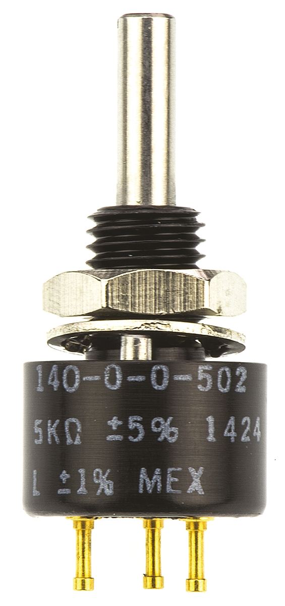 This is 140 Series Wirewound Potentiometer with a 3.17 mm Dia. Shaft 5kΩ ±5% 2W ±20ppm/°C Panel Mount manufactured by Vishay. The manufacturer part number is 140B00502. The product is available in panel mount configuration. The product 140, is a highly preferred choice for users. Moreover, it has turret terminal style. It comprises 1 gangs. Consist of 1 turns. The product carries slotted shaft actuator. It features ±5% of tolerance value.