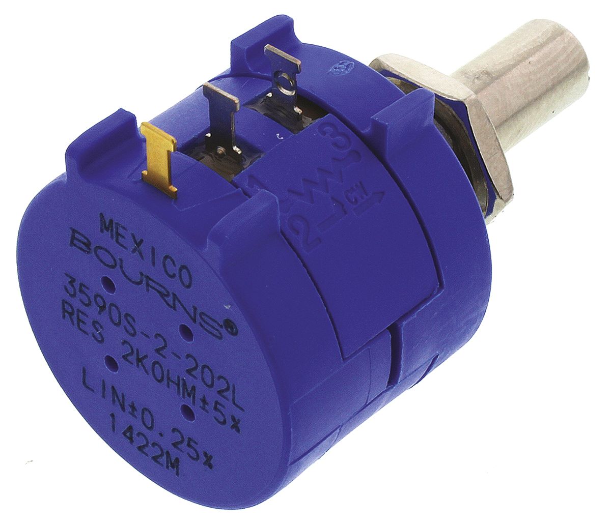 This is 3590S Series Wirewound Potentiometer with a 6.35 mm Dia. Shaft 10-Turn 2kΩ ±5% 2W ±50ppm/°C Panel Mount manufactured by Bourns. The manufacturer part number is 3590S-2-202L. The product is available in panel mount configuration. The product 3590, is a highly preferred choice for users. Moreover, it has solder lug terminal style. It comprises 1 gangs. Consist of 10 turns. The product carries slotted shaft actuator. It features ±5% of tolerance value.
