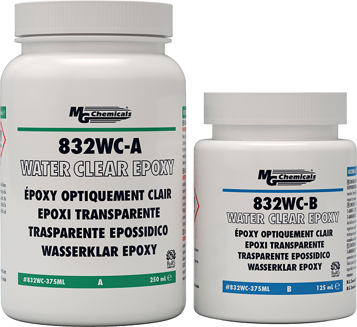 This is Clear Epoxy Potting Compound manufactured by MG Chemical. The manufacturer part number is 832WC-375ML. Whereas, the minimum operating temperature of the product is -40°c. It has a maximum operating temperature of +140°c.