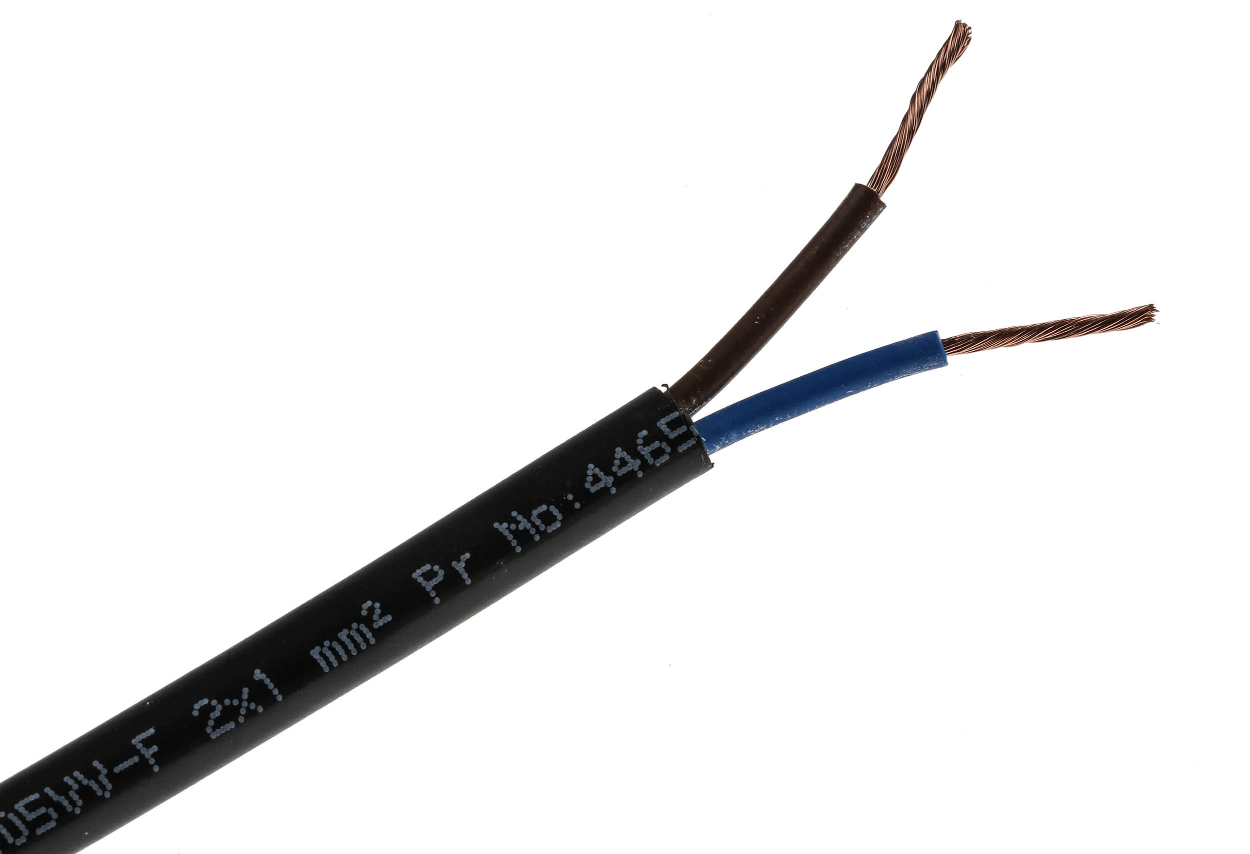 This is 2 Core 1 mm² Mains Power Cable Black Polyvinyl Chloride PVC Sheath 100m 10 A 300 V 500 V 3182Y H05VV-F manufactured by RS Pro. The manufacturer part number is 775-6090. The product has a current rating of 10 a. Moreover, the product has a nominal 300 v, 500 v voltage rating. The conductor is made from copper material. It has a maximum operating temperature of +70°c. It is a typical 3182y cable. Its accurate length is 100m. It has a robust pvc insulation material.