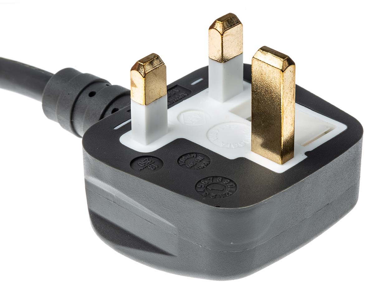 This is 2m power cord Right Angle C13 to UK Plug (BS 1363) 10 A 250 V manufactured by RS Pro. The manufacturer part number is 426-424. The product has a current rating of 10 a. Moreover, the product has a nominal 250 v voltage rating. Its accurate length is 2m.
