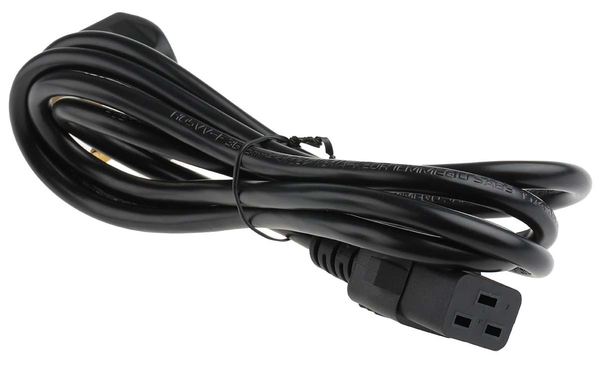 This is 2m power cord C19 to UK Plug (BS 1363) 13 A 250 V manufactured by RS Pro. The manufacturer part number is 311-9315. The product has a current rating of 13 a. Moreover, the product has a nominal 250 v voltage rating. Its accurate length is 2m.