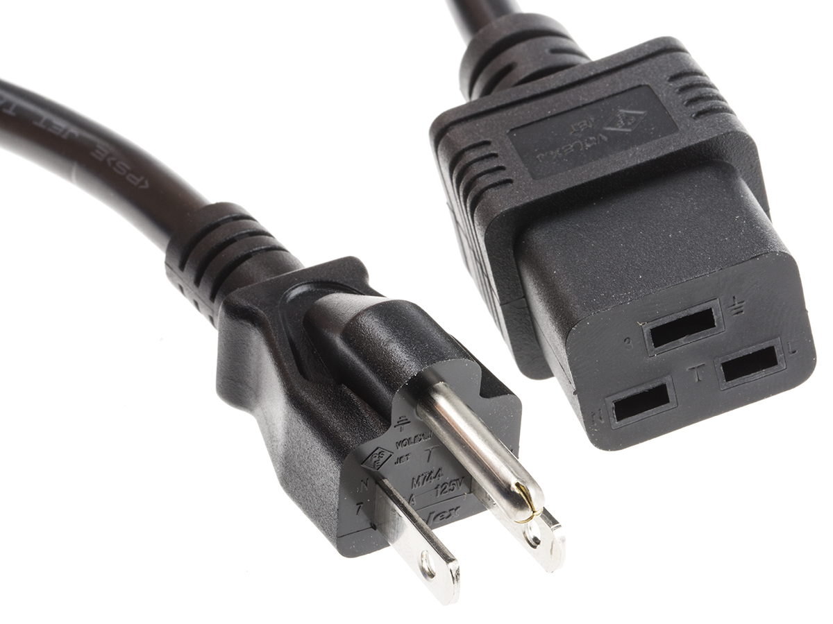This is 2m power cord C19 to Japanese Plug (Japanese 3 Pole) 15 A 125 V manufactured by RS Pro. The manufacturer part number is 909-2203. The product has a current rating of 15 a. Moreover, the product has a nominal 125 v voltage rating. Its accurate length is 2m.
