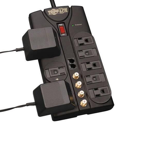 This is manufactured by Tripp Lite. The manufacturer part number is AV810. It is assigned with possible HTSUS value of 8536.30.8000. The product also features robust plastic housing material. It is approved by fcc, ic, ul. The possible product's input voltage is 120v. It comes in outlet strip, surge protector configuration. The given maximum current is 15a. In addition, it is reach unaffected. It is shipped in bulk. The product is utilised in various regions, including north america. Its typical moisture sensitivity level is not applicable. The cord is 10' (3.05m) long. The product is available in bench, floor, wall configuration. It carries an energy of 3240j. The product is designated with the ear99 code number