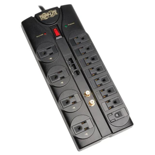 This is manufactured by Tripp Lite. The manufacturer part number is TLP1208SAT. It is assigned with possible HTSUS value of 8537.10.9170. The product is rohs compliant. The product also features robust plastic housing material. It is approved by csa, cul, fcc, ul. The possible product's input voltage is 120v. It comes in outlet strip, surge protector configuration. The given maximum current is 15a. It is shipped in bulk. The product is utilised in various regions, including north america. Its typical moisture sensitivity level is not applicable. The cord is 8' (2.44m) long. It has a long 2 weeks standard lead time. The product is available in bench, floor, wall configuration. The product protect it!®, is a highly preferred choice for users. It carries an energy of 2880j. The product is designated with the ear99 code number