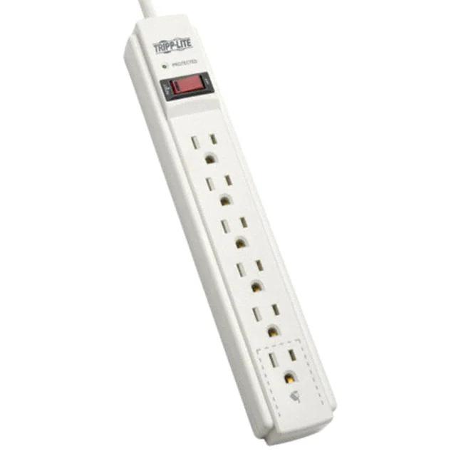 This is manufactured by Tripp Lite. The manufacturer part number is TLP606. It is assigned with possible HTSUS value of 8537.10.9170. The product is rohs compliant. The product also features robust plastic housing material. It is approved by csa, cul, ul. The possible product's input voltage is 120v. The product is available in bench, floor, wall configuration. It comes in outlet strip, surge protector configuration. The given maximum current is 15a. It is shipped in bulk. The product is utilised in various regions, including north america. Its typical moisture sensitivity level is not applicable. The cord is 6' (1.83m) long. It has a long 2 weeks standard lead time. The typical product's weight is 1.1 lbs (499 g). The product protect it!®, is a highly preferred choice for users. It carries an energy of 720j. The product is designated with the ear99 code number