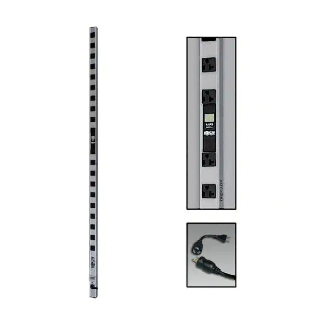 This is manufactured by Tripp Lite. The manufacturer part number is PDUMV20. It is assigned with possible HTSUS value of 8537.10.9170. The product is rohs compliant. The product also features robust aluminum housing material. It is approved by csa, ul. The possible product's input voltage is 120v. The product is available in rack, vertical configuration. It comes in pdu (power distribution unit) configuration. The given maximum current is 20a. It is shipped in bulk. The product is utilised in various regions, including north america. Its typical moisture sensitivity level is not applicable. The cord is 15' (4.57m) long. It has a long 2 weeks standard lead time. The splendid features of the product include load meter. The typical product's weight is 5.4 lbs (2.4 kg). The product is designated with the ear99 code number