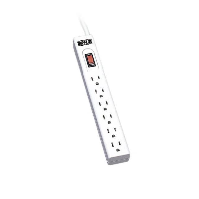 This is manufactured by Tripp Lite. The manufacturer part number is TLP604. It is assigned with possible HTSUS value of 8537.10.9170. The product is rohs compliant. The product also features robust plastic housing material. It is approved by csa, cul, ul. The possible product's input voltage is 120v. The product is available in bench, floor, wall configuration. It comes in outlet strip, surge protector configuration. The given maximum current is 15a. It is shipped in bulk. The product is utilised in various regions, including north america. Its typical moisture sensitivity level is not applicable. The cord is 4' (1.22m) long. It has a long 2 weeks standard lead time. The typical product's weight is 0.85 lb (385.55 g). The product protect it!®, is a highly preferred choice for users. It carries an energy of 790j. The product is designated with the ear99 code number