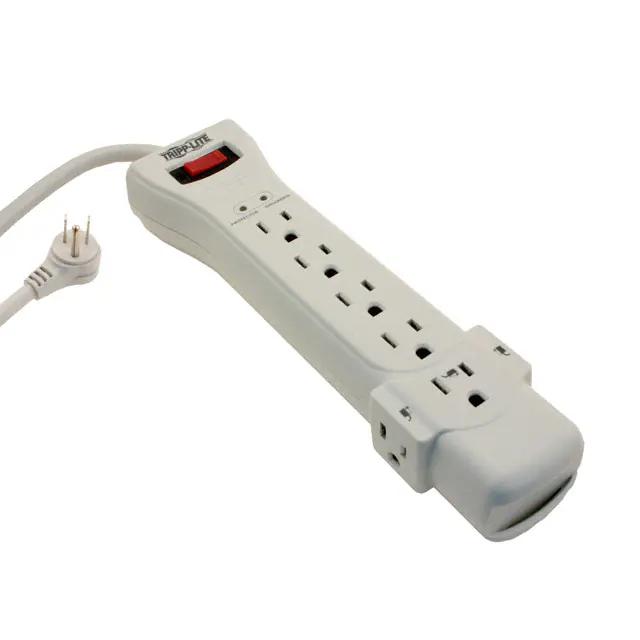 This is manufactured by Tripp Lite. The manufacturer part number is SUPER-7. It is assigned with possible HTSUS value of 8537.10.9170. The product is not applicable. The product also features robust plastic housing material. It is approved by csa, cul, ul. The possible product's input voltage is 120v. The product is available in bench, floor, wall configuration. It comes in outlet strip, surge protector configuration. The given maximum current is 15a. It is shipped in bulk. The product is utilised in various regions, including north america. Its typical moisture sensitivity level is not applicable. The cord is 7' (2.13m) long. It has a long 2 weeks standard lead time. The typical product's weight is 1.4 lbs (635 g). The product protect it!®, is a highly preferred choice for users. It carries an energy of 2160j. The product is designated with the ear99 code number