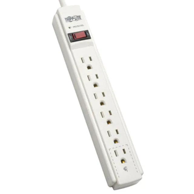 This is manufactured by Tripp Lite. The manufacturer part number is TLP606TAA. It is assigned with possible HTSUS value of 8537.10.9170. The product is rohs compliant. The product also features robust plastic housing material. It is approved by csa, cul, ul. The possible product's input voltage is 120v. It comes in outlet strip, surge protector configuration. The given maximum current is 15a. It is shipped in bulk. The product is utilised in various regions, including north america. Its typical moisture sensitivity level is not applicable. The cord is 6' (1.83m) long. It has a long 2 weeks standard lead time. The product is available in bench, floor, wall configuration. The product protect it!®, is a highly preferred choice for users. It carries an energy of 790j. The product is designated with the ear99 code number