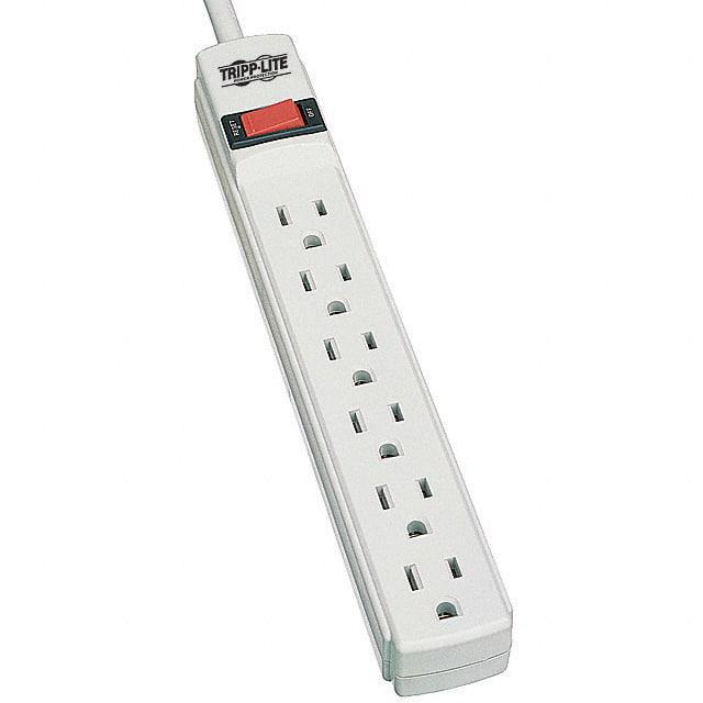 This is manufactured by Tripp Lite. The manufacturer part number is TLP602. It is assigned with possible HTSUS value of 8537.10.9170. The product is not applicable. The product also features robust plastic housing material. It is approved by csa, cul, ul. The possible product's input voltage is 120v. The product is available in bench, floor, wall configuration. It comes in outlet strip, surge protector configuration. The given maximum current is 15a. It is shipped in bulk. The product is utilised in various regions, including north america. Its typical moisture sensitivity level is not applicable. The cord is 2' (0.61m) long. It has a long 2 weeks standard lead time. The typical product's weight is 0.57 lb (258.55 g). The product protect it!®, is a highly preferred choice for users. It carries an energy of 180j. The product is designated with the ear99 code number