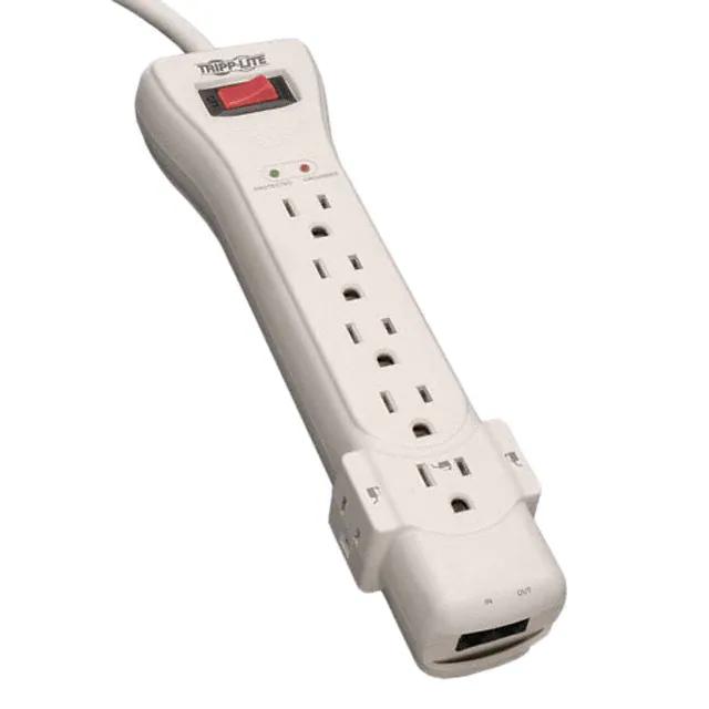 This is manufactured by Tripp Lite. The manufacturer part number is SUPER7TEL15. It is assigned with possible HTSUS value of 8537.10.9170. The product is rohs compliant. The product also features robust plastic housing material. It is approved by csa, cul, fcc, ul. The possible product's input voltage is 120v. The product is available in bench, floor, wall configuration. It comes in outlet strip, surge protector configuration. The given maximum current is 15a. It is shipped in bulk. The product is utilised in various regions, including north america. Its typical moisture sensitivity level is not applicable. The cord is 15' (4.57m) long. It has a long 2 weeks standard lead time. The typical product's weight is 2.1 lbs (952.5 g). The product protect it!®, is a highly preferred choice for users. It carries an energy of 2520j. The product is designated with the ear99 code number