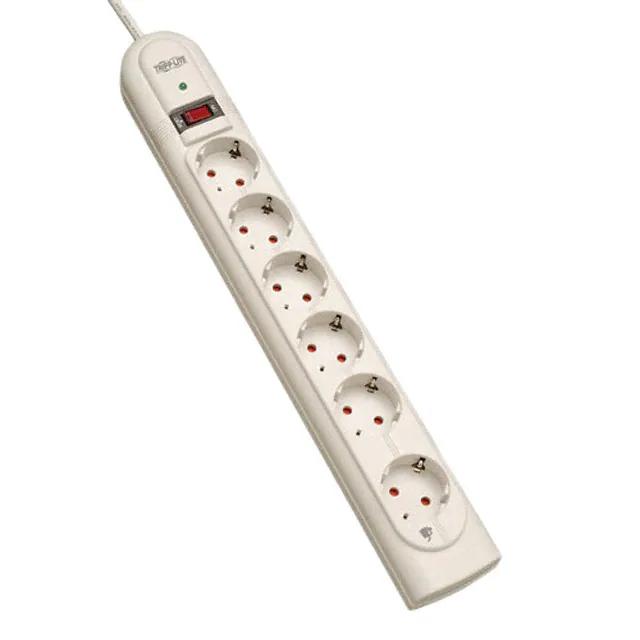 This is manufactured by Tripp Lite. The manufacturer part number is TLP61D. It is assigned with possible HTSUS value of 8537.10.9170. The possible product's input voltage is 230v. It comes in outlet strip, surge protector configuration. The given maximum current is 10a. It is shipped in bulk. The product is utilised in various regions, including continental europe. Its typical moisture sensitivity level is not applicable. The cord is 6' (1.83m) long. The product is available in bench, floor, wall configuration. The product protect it!®, is a highly preferred choice for users. It carries an energy of 1140j. The product is designated with the ear99 code number