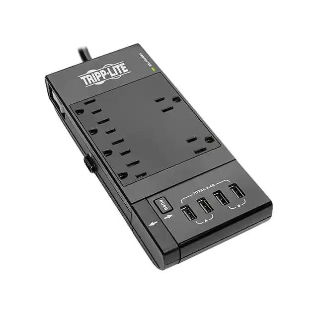 This is manufactured by Tripp Lite. The manufacturer part number is TLP66USBR. It is assigned with possible HTSUS value of 8537.10.9170. The product also features robust plastic housing material. It is approved by cul. The possible product's input voltage is 120v. The product is available in bench, wall configuration. It comes in outlet strip, surge protector configuration. It is shipped in bulk. The product is utilised in various regions, including north america. Its typical moisture sensitivity level is not applicable. The cord is 6' (1.83m) long. It has a long 2 weeks standard lead time. The splendid features of the product include usb charge port(s). The typical product's weight is 1.8 lbs (816.5 g). The product protect it!®, is a highly preferred choice for users. It carries an energy of 1080j. The product is designated with the ear99 code number