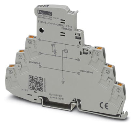 This is 30 V dc 5 (Discharge)kA TTC Surge Protection Device DIN Rail Mounting manufactured by Phoenix Contact. The manufacturer part number is 2908439. The given dimensions of the product include 83.5 x 6.2 x 105.8mm. The product is available in din rail configuration. The product ttc-6-2-hc-24dc-pt-i, is a highly preferred choice for users. Its accurate length is 83.5mm. In addition, the height is 105.8mm. The product comes in 6.2mm depth. Whereas, the minimum operating temperature of the product is -40°c. It has a maximum operating temperature of +85°c. It is assigned with possible HTSUS value of 8536.30.8000. The product is rohs compliant. The product also features robust plastic housing material. It is approved by ccsaus, csa, csaus, dnv gl, ul. The possible product's input voltage is 24vdc. It comes in surge protection module configuration. The given maximum current is 6a. It is shipped in bulk. The product is utilised in various regions, including international. Its typical moisture sensitivity level is not applicable. It has a long 9 weeks standard lead time. The product ttc, is a highly preferred choice for users. The product is designated with the ear99 code number