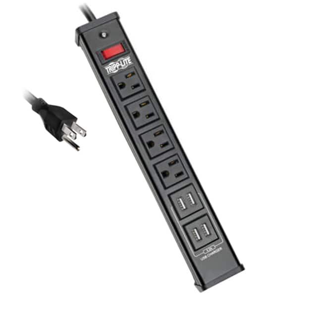 This is manufactured by Tripp Lite. The manufacturer part number is TLM446USBB. It is assigned with possible HTSUS value of 8537.10.9170. The product is rohs compliant. The product also features robust metal housing material. It is approved by csa, cul, ul. The possible product's input voltage is 120v. It comes in outlet strip, surge protector configuration. The given maximum current is 15a. It is shipped in bulk. The product is utilised in various regions, including north america. Its typical moisture sensitivity level is not applicable. The cord is 6' (1.83m) long. It has a long 2 weeks standard lead time. The splendid features of the product include switch, usb charge port(s). The product is available in bench, floor, wall configuration. It carries an energy of 450j. The product is designated with the ear99 code number