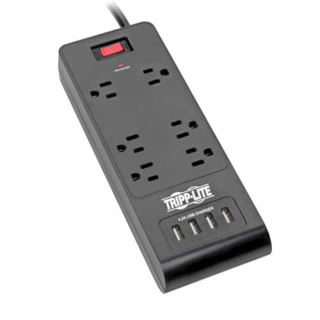 This is manufactured by Tripp Lite. The manufacturer part number is TLP664USBB. It is assigned with possible HTSUS value of 8537.10.9170. The product is rohs compliant. The product also features robust plastic housing material. It is approved by csa, cul, ul. The possible product's input voltage is 120v. It comes in outlet strip, surge protector configuration. The given maximum current is 15a. It is shipped in bulk. The product is utilised in various regions, including north america. Its typical moisture sensitivity level is not applicable. The cord is 6' (1.83m) long. It has a long 2 weeks standard lead time. The splendid features of the product include switch, usb charge port(s). The product is available in bench, floor, wall configuration. It carries an energy of 900j. The product is designated with the ear99 code number