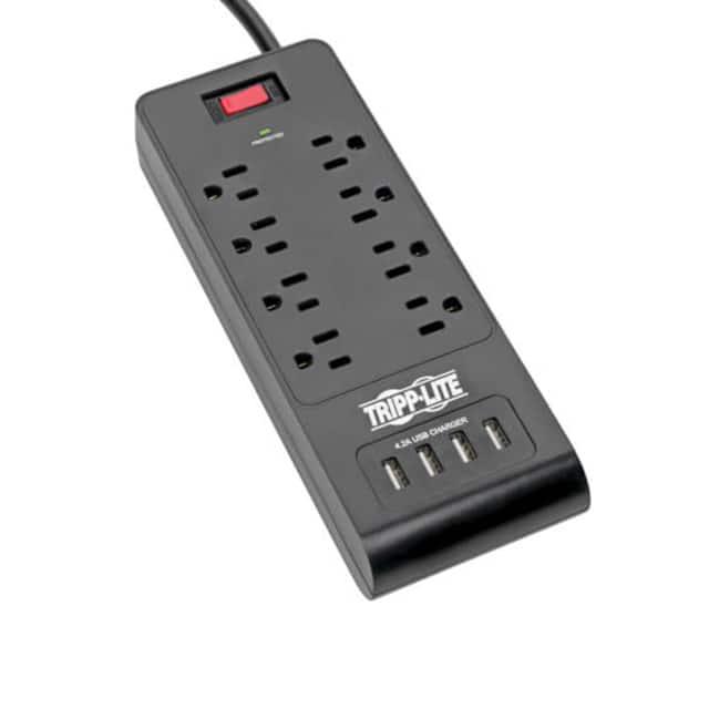 This is manufactured by Tripp Lite. The manufacturer part number is TLP864USBB. It is assigned with possible HTSUS value of 8537.10.9170. The product is rohs compliant. The product also features robust plastic housing material. It is approved by csa, cul, ul. The possible product's input voltage is 120v. It comes in outlet strip, surge protector configuration. The given maximum current is 15a. It is shipped in bulk. The product is utilised in various regions, including north america. Its typical moisture sensitivity level is not applicable. The cord is 6' (1.83m) long. It has a long 2 weeks standard lead time. The splendid features of the product include switch, usb charge port(s). The product is available in bench, floor, wall configuration. It carries an energy of 1800j. The product is designated with the ear99 code number