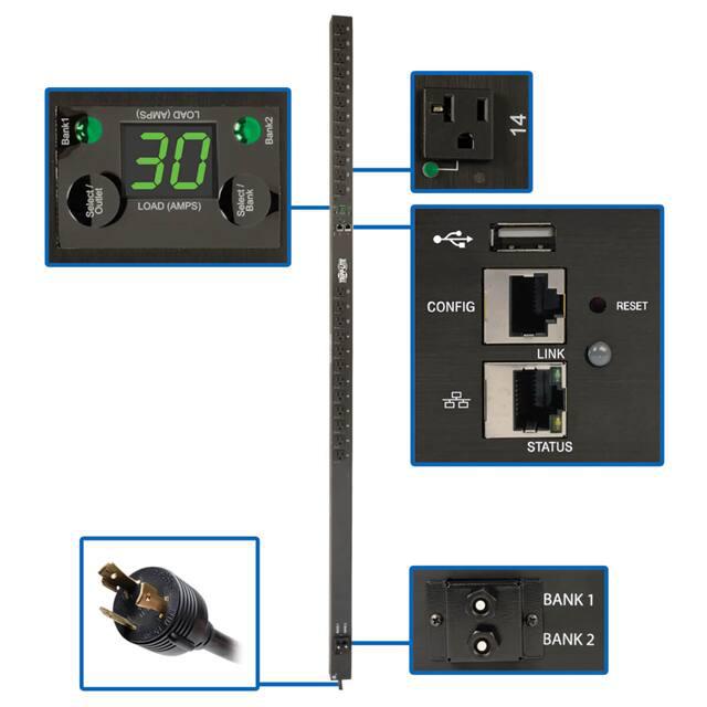 This is manufactured by Tripp Lite. The manufacturer part number is PDUNVR30LX. It is assigned with possible HTSUS value of 8537.10.9170. The product is rohs3 compliant. It is approved by csa, fcc, nom, ul. The possible product's input voltage is 120v. The product is available in rack, vertical configuration. It comes in pdu, surge protector configuration. The given maximum current is 30a. It is shipped in bulk. The product is utilised in various regions, including north america. Its typical moisture sensitivity level is not applicable. The cord is 10' (3.05m) long. It has a long 8 weeks standard lead time. The splendid features of the product include ethernet control and monitor interface, load meter, programmable alerts. The product is designated with the ear99 code number