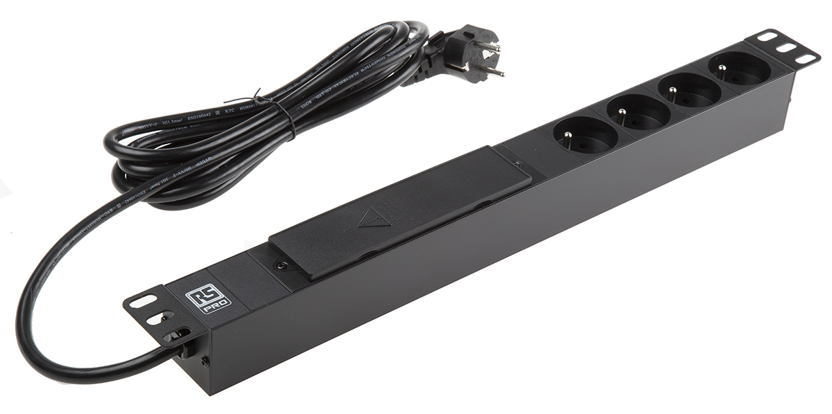 This is Type F - German Schuko 4 Gang Trailing Sockets & Power Distribution 3m Cable 16A 250 V ac manufactured by RS Pro. The manufacturer part number is 161-7263. The product has a current rating of 16a. Moreover, the product has a nominal 250 v ac voltage rating. The cord is 3m long.