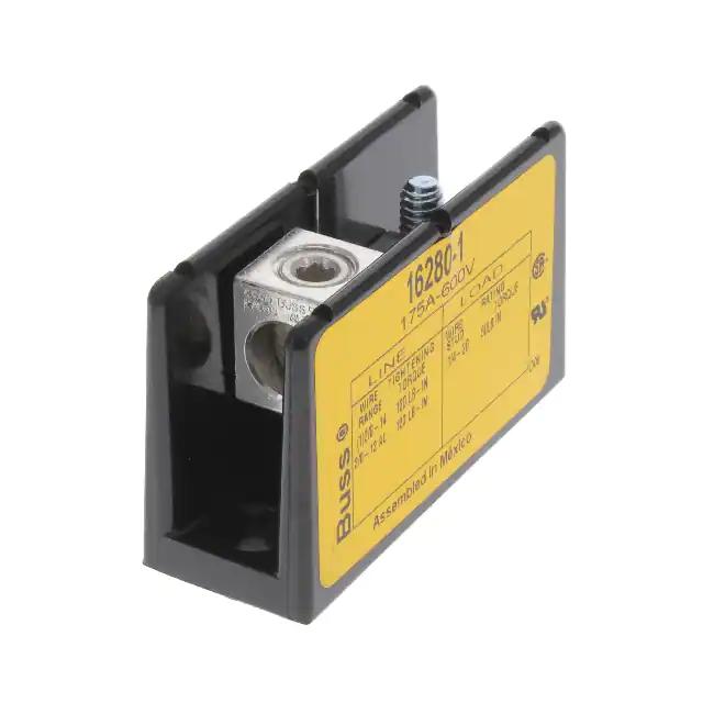 This is manufactured by Eaton - Bussmann Electrical Division. The manufacturer part number is 16280-1. It also exhibits voltage rating of 600 v. The product is rohs compliant. It comes in power stud terminal block configuration. It is assigned with possible HTSUS value of 8536.69.8000. It is shipped in bulk. Its typical moisture sensitivity level is 1 (unlimited). It has a long 8 weeks standard lead time. Additionally, the product's output is 175 a The product magnum® 162, is a highly preferred choice for users. It has equipped with 1 poles. The product is designated with the ear99 code number