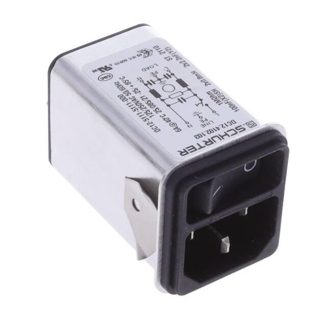 This is manufactured by Schurter Inc.. The manufacturer part number is DC12.4102.103. Filter with 6a current rating. It is assigned with possible HTSUS value of 8536.69.4030. The product is rohs3 compliant. It has a panel thickness of 0.039" ~ 0.118" (1.00mm ~ 3.00mm). It is approved by cqc, culus, enec. It also has a rectangular - 29.40mm x 33.10mm dimensional features. The filter is a filtered (emi, rfi) - commercial type with excellent features. It comes in iec 320-c14 connector style. The product carries possible position value of 3. Switch Attributes - switch on-off. The appliance's inlet current rating is 10a. The appliance has a voltage rating of 250vac its inlet. In addition, it is reach unaffected. It carries ul94 v-0 of material flammability rating. It is shipped in bulk. receptacle, male blades - module Connector type offer robust functionality. Fuse Accommodation - [Accommodates a Fuse]. Its typical moisture sensitivity level is not applicable. The product features quick connect - 0.250" (6.3mm) termination style. It has a long 34 weeks standard lead time. It is IP rated with ip40. The splendid features of the product include shielded, v-lock notch. The product is available in panel mount, snap-in configuration. The product dc12, is a highly preferred choice for users. Moreover, it corresponds to dc12.4102, a base product number of the product. The product is designated with the ear99 code number