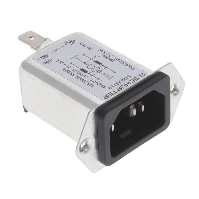 This is manufactured by Schurter Inc.. The manufacturer part number is 5120.4373.0. Filter with 4a current rating. It is assigned with possible HTSUS value of 8536.30.8000. The product is rohs3 compliant. It has a panel thickness of 0.315" (8.00mm). It is approved by ccc, culus, enec. It also has a rectangular - 30.50mm x 22.50mm dimensional features. The filter is a filtered (emi, rfi) - commercial, medical type with excellent features. It comes in iec 320-c14 connector style. The product carries possible position value of 3. The appliance's inlet current rating is 4a. The appliance has a voltage rating of 250vac its inlet. In addition, it is reach unaffected. It carries ul94 v-0 of material flammability rating. It is shipped in bulk. receptacle, male blades Connector type offer robust functionality. Fuse Accommodation - [Accommodates a Fuse]. Its typical moisture sensitivity level is not applicable. The product features solder termination style. It has a long 27 weeks standard lead time. It is IP rated with ip40. The splendid features of the product include shielded. The product is available in panel mount, flange; through hole, right angle configuration. The product 5120, is a highly preferred choice for users. Moreover, it corresponds to 5120.4373, a base product number of the product. The product is designated with the ear99 code number