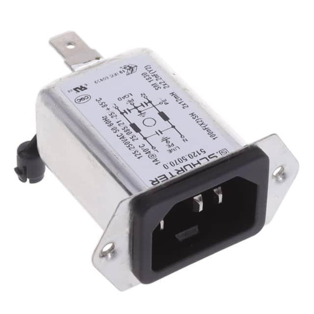 This is manufactured by Schurter Inc.. The manufacturer part number is 5120.5070.0. Filter with 1a current rating. It is assigned with possible HTSUS value of 8536.30.8000. The product is rohs3 compliant. It has a panel thickness of 0.315" (8.00mm). It is approved by ccc, culus, enec. It also has a rectangular - 30.50mm x 22.50mm dimensional features. The filter is a filtered (emi, rfi) - commercial type with excellent features. It comes in iec 320-c14 connector style. The product carries possible position value of 3. The appliance's inlet current rating is 1a. The appliance has a voltage rating of 250vac its inlet. In addition, it is reach unaffected. It carries ul94 v-0 of material flammability rating. It is shipped in bulk. receptacle, male blades Connector type offer robust functionality. Fuse Accommodation - [Accommodates a Fuse]. Its typical moisture sensitivity level is not applicable. The product features solder termination style. It has a long 26 weeks standard lead time. It is IP rated with ip40. The splendid features of the product include board lock, shielded. The product is available in panel mount, flange; through hole, right angle configuration. The product 5120, is a highly preferred choice for users. Moreover, it corresponds to 5120.5070, a base product number of the product. The product is designated with the ear99 code number
