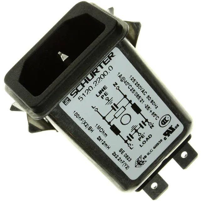 This is manufactured by Schurter Inc.. The manufacturer part number is 5120.2200.0. Filter with 1a current rating. It is assigned with possible HTSUS value of 8536.30.8000. The product is rohs3 compliant. It has a panel thickness of 0.031" ~ 0.079" (0.79mm ~ 2.00mm). It is approved by ccc, culus, enec. It also has a rectangular - 29.40mm x 21.50mm dimensional features. The filter is a filtered (emi, rfi) - commercial type with excellent features. It comes in iec 320-c14 connector style. The product carries possible position value of 3. The appliance's inlet current rating is 1a. The appliance has a voltage rating of 250vac its inlet. In addition, it is reach unaffected. It carries ul94 v-0 of material flammability rating. It is shipped in bulk. receptacle, male blades Connector type offer robust functionality. Fuse Accommodation - [Accommodates a Fuse]. Its typical moisture sensitivity level is not applicable. The product features quick connect - 0.250" (6.3mm) termination style. It has a long 33 weeks standard lead time. It is IP rated with ip40. The splendid features of the product include bleed resistor, shielded. The product is available in panel mount, snap-in configuration. The product 5120, is a highly preferred choice for users. Moreover, it corresponds to 5120.2200, a base product number of the product. The product is designated with the ear99 code number