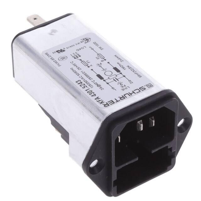 This is manufactured by Schurter Inc.. The manufacturer part number is 4301.5243. Filter with 2a current rating. It is assigned with possible HTSUS value of 8536.30.8000. The product is rohs3 compliant. It is approved by ccc, culus, enec. It also has a rectangular - 29.00mm x 33.00mm dimensional features. The filter is a filtered (emi, rfi) - commercial, medical type with excellent features. It comes in iec 320-c14 connector style. The product carries possible position value of 3. The appliance's inlet current rating is 2a. The appliance has a voltage rating of 250vac its inlet. In addition, it is reach unaffected. It carries ul94 v-0 of material flammability rating. It is shipped in bulk. receptacle, male blades - module Connector type offer robust functionality. Fuse Accommodation - [Accommodates a Fuse]. Its typical moisture sensitivity level is not applicable. The product features quick connect - 0.189" (4.8mm) termination style. It has a long 35 weeks standard lead time. It is IP rated with ip40. The splendid features of the product include voltage selector. The product is available in panel mount, flange configuration. The product kfa, is a highly preferred choice for users. Supplied with a drawer sold separate. The product is designated with the ear99 code number