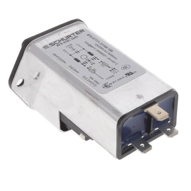 This is manufactured by Schurter Inc.. The manufacturer part number is 4301.5045. Filter with 10a current rating. It is assigned with possible HTSUS value of 8536.69.4030. The product is rohs3 compliant. It is approved by ccc, culus, enec. It also has a rectangular - 29.00mm x 33.00mm dimensional features. The filter is a filtered (emi, rfi) - commercial type with excellent features. It comes in iec 320-c14 connector style. The product carries possible position value of 3. The appliance's inlet current rating is 10a. The appliance has a voltage rating of 250vac its inlet. In addition, it is reach unaffected. It carries ul94 v-0 of material flammability rating. It is shipped in bulk. receptacle, male blades - module Connector type offer robust functionality. Fuse Accommodation - [Accommodates a Fuse]. Its typical moisture sensitivity level is not applicable. The product features idc, quick connect - 0.250" (6.3mm) termination style. It has a long 28 weeks standard lead time. It is IP rated with ip40. The splendid features of the product include voltage selector. The product is available in panel mount, flange configuration. The product kfa, is a highly preferred choice for users. Supplied with a drawer sold separate. The product is designated with the ear99 code number