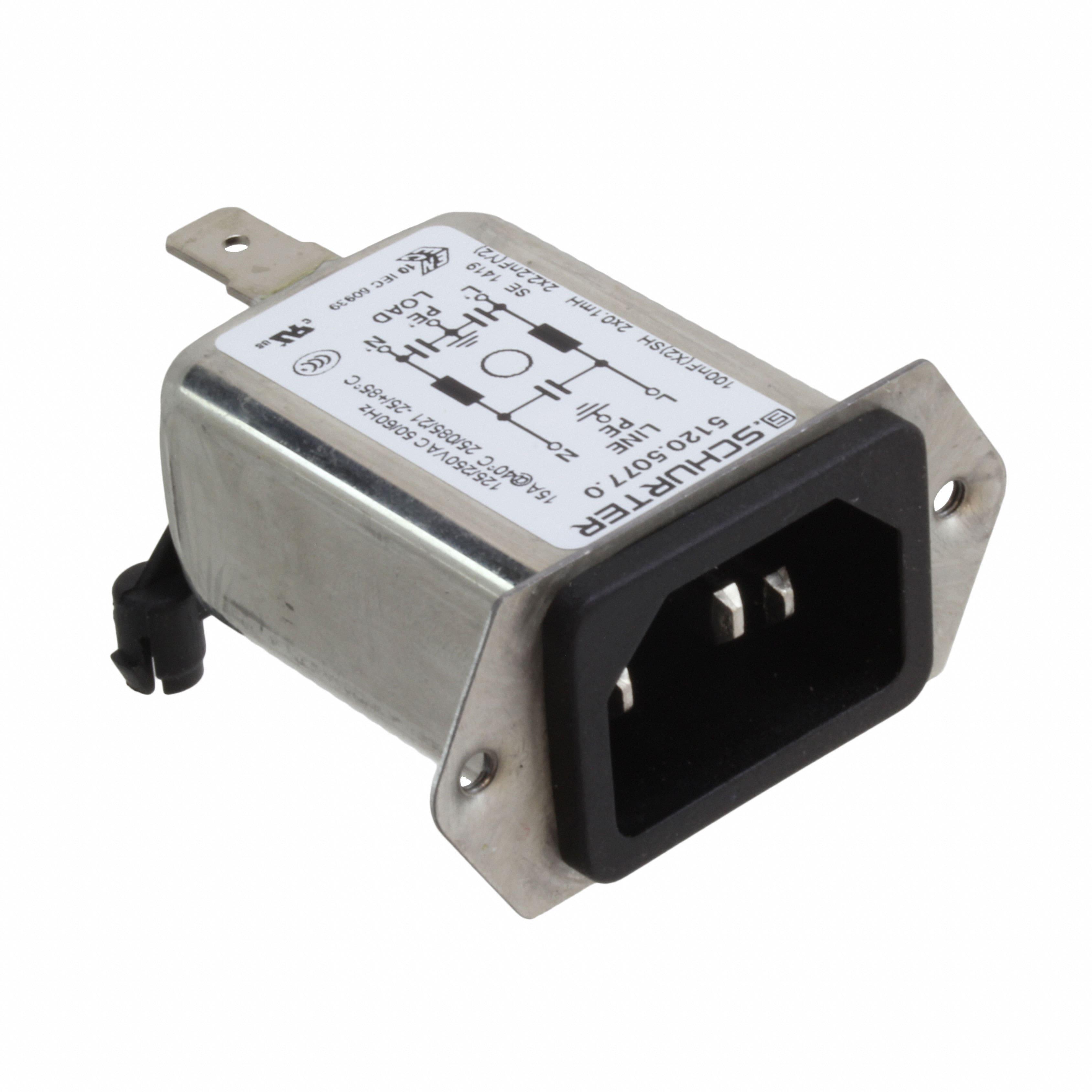 This is manufactured by Schurter Inc.. The manufacturer part number is 5120.5077.0. Filter with 15a current rating. It is assigned with possible HTSUS value of 8536.30.8000. The product is rohs3 compliant. It has a panel thickness of 0.118" (3.00mm). It is approved by ccc, culus, enec. It also has a rectangular - 30.50mm x 22.50mm dimensional features. The filter is a filtered (emi, rfi) - commercial type with excellent features. It comes in iec 320-c14 connector style. The product carries possible position value of 3. In addition, it is reach unaffected. It carries ul94 v-0 of material flammability rating. It is shipped in bulk. receptacle, male blades Connector type offer robust functionality. Fuse Accommodation - [Accommodates a Fuse]. Its typical moisture sensitivity level is not applicable. The product features solder termination style. It has a long 35 weeks standard lead time. It is IP rated with ip40. The splendid features of the product include board lock, shielded. The product is available in panel mount, flange; through hole, right angle configuration. The product 5120, is a highly preferred choice for users. Moreover, it corresponds to 5120.5077, a base product number of the product. The product is designated with the ear99 code number