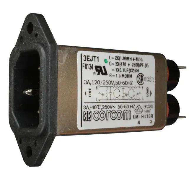 This is manufactured by TE Connectivity Corcom Filters. The manufacturer part number is 3EJT1. Filter with 3a current rating. It is assigned with possible HTSUS value of 8536.69.4030. The product is rohs3 compliant. It is approved by csa, ul, vde. It also has a rectangular - 30.48mm x 22.86mm dimensional features. The filter is a filtered (emi, rfi) - commercial type with excellent features. It comes in iec 320-c14 connector style. The product carries possible position value of 3. The appliance's inlet current rating is 3a. The appliance has a voltage rating of 120/250vac its inlet. In addition, it is reach affected. It is shipped in bulk. receptacle, male blades Connector type offer robust functionality. Fuse Accommodation - [Accommodates a Fuse]. Its typical moisture sensitivity level is not applicable. The product features quick connect - 0.250" (6.3mm) termination style. It has a long 28 weeks standard lead time. The product is available in panel mount, flange configuration. The product ejt, corcom, is a highly preferred choice for users. The product is designated with the ear99 code number