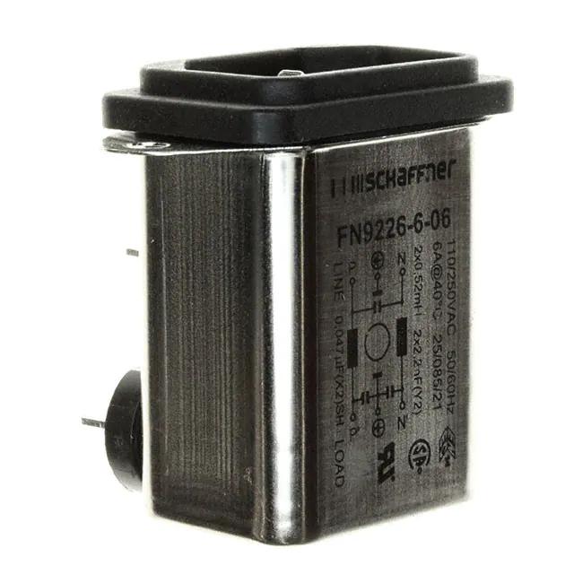 This is manufactured by Schaffner EMC Inc.. The manufacturer part number is FN9226-6-06. Filter with 6a current rating. It is assigned with possible HTSUS value of 8536.69.4030. The product is rohs3 compliant. It is approved by csa, enec, semko, ul. It also has a rectangular - 34.40mm x 22.60mm dimensional features. The filter is a filtered (emi, rfi) - commercial type with excellent features. It comes in iec 320-c14 connector style. The product carries possible position value of 3. In addition, it is reach unaffected. It carries ul94 v-2 of material flammability rating. It is shipped in tray. receptacle, male blades Connector type offer robust functionality. Fuse Accommodation - [Accommodates a Fuse]. Its typical moisture sensitivity level is not applicable. The product features quick connect - 0.250" (6.3mm) termination style. It has a long 16 weeks standard lead time. It is IP rated with ip40. The product is available in panel mount, flange, right angle configuration. The product fn 9226, is a highly preferred choice for users. Moreover, it corresponds to fn9226, a base product number of the product. The product is designated with the ear99 code number