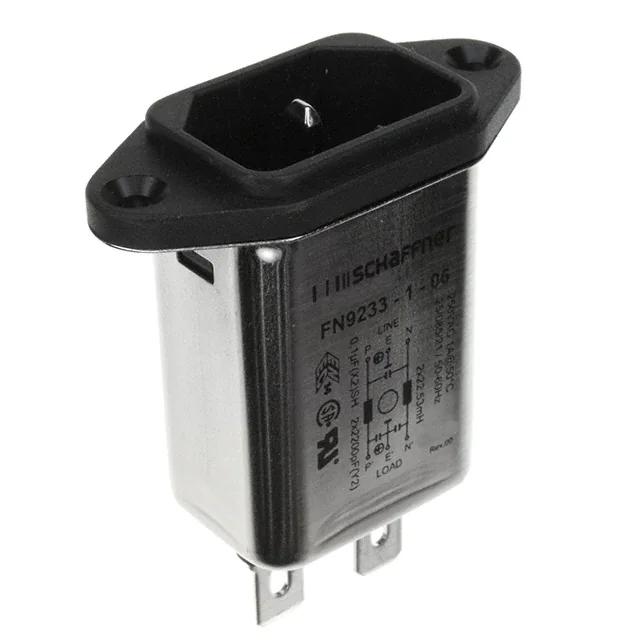This is manufactured by Schaffner EMC Inc.. The manufacturer part number is FN9233-1-06. Filter with 1a current rating. It is assigned with possible HTSUS value of 8536.69.4030. The product is rohs3 compliant. It is approved by cqc, csa, enec, ul. It also has a rectangular - 28.50mm x 21.50mm dimensional features. The filter is a filtered (emi, rfi) - commercial type with excellent features. It comes in iec 320-c14 connector style. The product carries possible position value of 3. In addition, it is reach unaffected. It carries ul94 v-2 of material flammability rating. It is shipped in tray. receptacle, male blades Connector type offer robust functionality. Fuse Accommodation - [Accommodates a Fuse]. Its typical moisture sensitivity level is 1 (unlimited). The product features quick connect - 0.250" (6.3mm) termination style. It has a long 16 weeks standard lead time. It is IP rated with ip40. The splendid features of the product include front or rear side mount. The product is available in panel mount, flange configuration. The product fn 9233, is a highly preferred choice for users. Moreover, it corresponds to fn9233, a base product number of the product. The product is designated with the ear99 code number