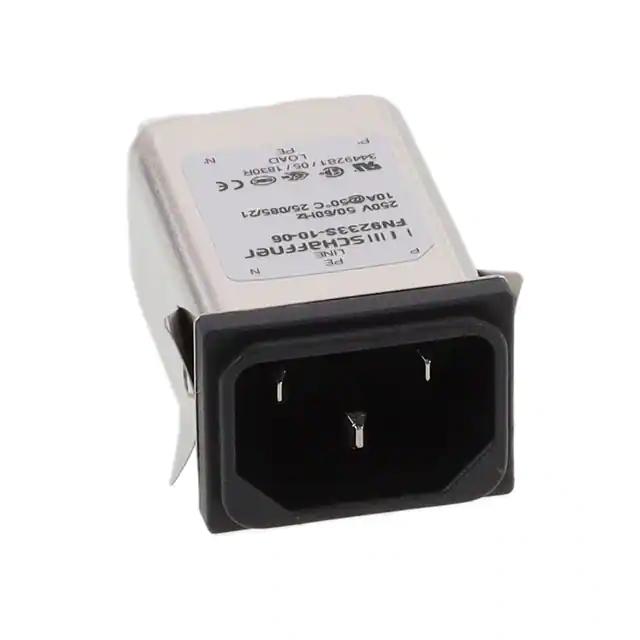 This is manufactured by Schaffner EMC Inc.. The manufacturer part number is FN9233S-10-06. Filter with 10a current rating. It is assigned with possible HTSUS value of 8536.69.4030. The product is rohs3 compliant. It has a panel thickness of 0.028" ~ 0.059" (0.70mm ~ 1.50mm). It is approved by cqc, csa, enec, ul. It also has a rectangular - 29.40mm x 20.80mm dimensional features. The filter is a filtered (emi, rfi) - commercial type with excellent features. It comes in iec 320-c14 connector style. The product carries possible position value of 3. In addition, it is reach unaffected. It carries ul94 v-2 of material flammability rating. It is shipped in tray. receptacle, male blades Connector type offer robust functionality. Fuse Accommodation - [Accommodates a Fuse]. Its typical moisture sensitivity level is 1 (unlimited). The product features quick connect - 0.250" (6.3mm) termination style. It has a long 16 weeks standard lead time. It is IP rated with ip40. The product is available in panel mount, snap-in configuration. The product fn 9233, is a highly preferred choice for users. Moreover, it corresponds to fn9233, a base product number of the product. The product is designated with the ear99 code number