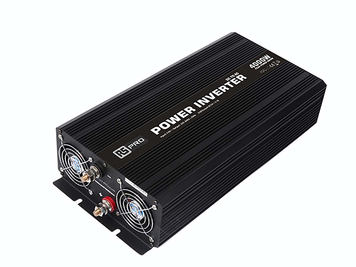 This is 4000W Fixed Installation DC-AC Power Inverter 24V dc / 230V ac manufactured by RS Pro. The manufacturer part number is 816-0087. The typical product's weight is 8.2kg. Its accurate length is 520mm. Furthermore, the product is 230mm wide. The product comes in 108mm depth. It provides robust protection features, such as over temperature protection, over voltage protection, overload protection, reverse polarity protection, short circuit protection.