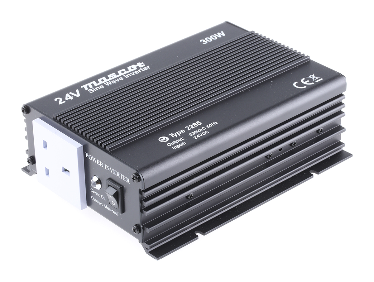 This is 300W DC-AC Car Power Inverter 20 → 30V dc / 230V ac manufactured by Mascot. The manufacturer part number is 2285000042. The typical product's weight is 1.6kg. It is a highly efficient product with an 90% of high efficiency. Its accurate length is 190mm. Furthermore, the product is 148mm wide. The product comes in 67mm depth.