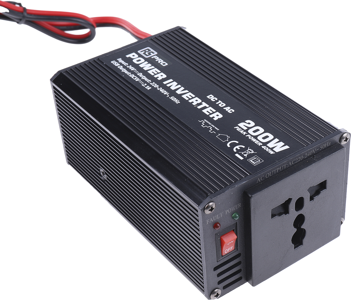 This is 200W Fixed Installation DC-AC Power Inverter 24V dc / 230V ac manufactured by RS Pro. The manufacturer part number is 816-0021. The typical product's weight is 445g. Its accurate length is 130mm. Furthermore, the product is 90mm wide. The product comes in 43.7mm depth. It provides robust protection features, such as over temperature protection, over voltage protection, overload protection, reverse polarity protection, short circuit protection.