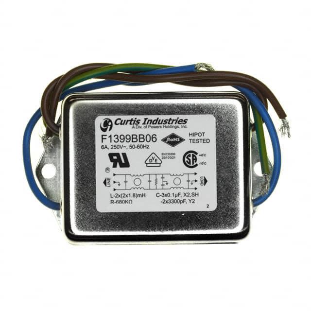 This is manufactured by Curtis Industries. The manufacturer part number is F1399BB06. The product has 250v AC voltage rating. It is assigned with possible HTSUS value of 8536.30.8000. The product is rohs3 compliant. Moreover, it has wire leads terminal style. Features a 6 a current in A. It is approved by ce, csa, tuv, ur. In addition, it is reach unaffected. The product is widely employed in general purpose. The product is available in two stage configuration. It is shipped in box. Its typical moisture sensitivity level is not applicable. The filter is a single phase type with excellent features. It has a long 12 weeks standard lead time. The product is available in chassis mount configuration. The product f1399, is a highly preferred choice for users. Features an operating frequency of 50/60hz. Moreover, it corresponds to f1399b, a base product number of the product. The product is designated with the ear99 code number