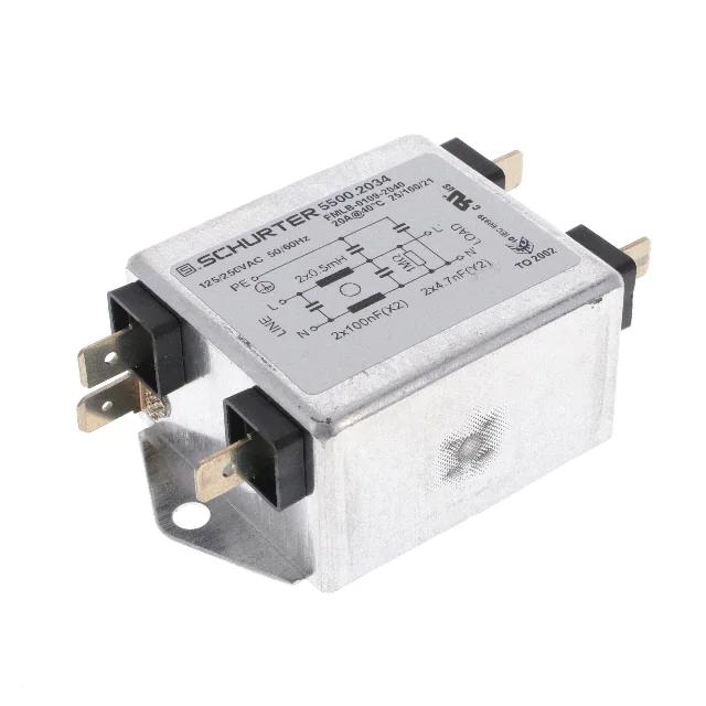 This is manufactured by Schurter Inc.. The manufacturer part number is 5500.2034. The product has 125v, 250v AC voltage rating. It is assigned with possible HTSUS value of 8548.00.0000. The product is rohs3 compliant. Moreover, it has quick connect terminal style. Features a 20 a current in A. The product has -25°c ~ 100°c operating temperature range. It is approved by curus, enec, vde. In addition, it is reach unaffected. The product is widely employed in general purpose. The product has a 500µh inductance value. The product is available in single stage configuration. It is shipped in bulk. Its typical moisture sensitivity level is not applicable. The filter is a single phase type with excellent features. It has a long 33 weeks standard lead time. The product is available in chassis mount configuration. The product fmlb-09, is a highly preferred choice for users. Features an operating frequency of 50/60hz. The product is designated with the ear99 code number