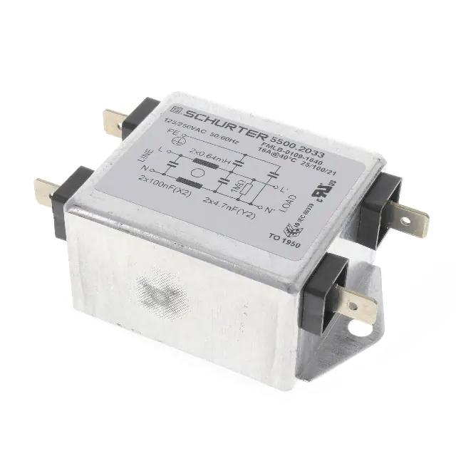 This is manufactured by Schurter Inc.. The manufacturer part number is 5500.2033. The product has 125v, 250v AC voltage rating. It is assigned with possible HTSUS value of 8548.00.0000. The product is rohs3 compliant. Moreover, it has quick connect terminal style. Features a 16 a current in A. The product has -25°c ~ 100°c operating temperature range. It is approved by curus, enec, vde. In addition, it is reach unaffected. The product is widely employed in general purpose. The product has a 640µh inductance value. The product is available in single stage configuration. It is shipped in bulk. Its typical moisture sensitivity level is not applicable. The filter is a single phase type with excellent features. It has a long 28 weeks standard lead time. The product is available in chassis mount configuration. The product fmlb-09, is a highly preferred choice for users. Features an operating frequency of 50/60hz. The product is designated with the ear99 code number