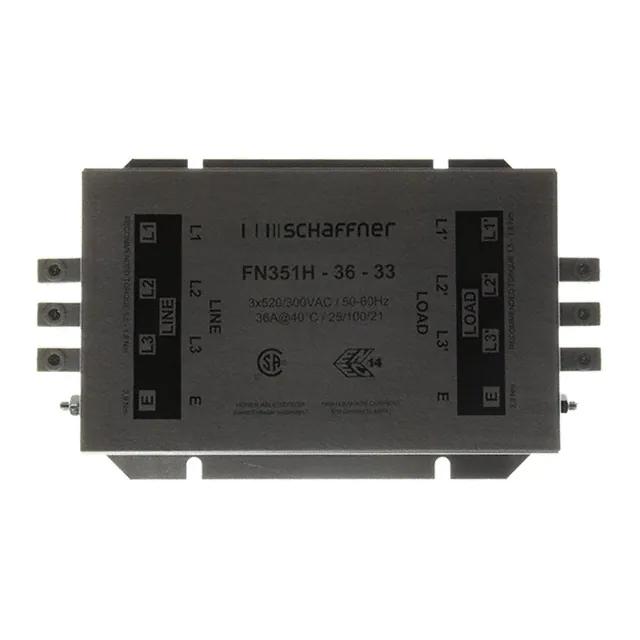 This is manufactured by Schaffner EMC Inc.. The manufacturer part number is FN351H-36-33. It is assigned with possible HTSUS value of 8548.00.0000. The product is rohs3 compliant. Moreover, it has terminal block terminal style. Features a 36 a current in A. The product has -25°c ~ 100°c operating temperature range. It is approved by csa, enec, ur. In addition, it is reach unaffected. The product is widely employed in inverters, power drive systems. The product is available in single stage configuration. It is shipped in tray. Its typical moisture sensitivity level is not applicable. The filter is a three phase (delta) type with excellent features. It has a long 16 weeks standard lead time. The product is available in chassis mount configuration. The product fn 351, is a highly preferred choice for users. Features an operating frequency of dc ~ 60hz. Moreover, it corresponds to fn351, a base product number of the product. The product is designated with the ear99 code number