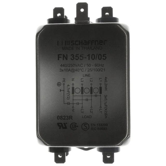 This is manufactured by Schaffner EMC Inc.. The manufacturer part number is FN355-10-05. It is assigned with possible HTSUS value of 8548.00.0000. The product is rohs3 compliant. Moreover, it has quick connect terminal style. Features a 10 a current in A. The product has -25°c ~ 100°c operating temperature range. It is approved by csa, semko, ur. In addition, it is reach unaffected. The product is widely employed in general purpose. The product is available in single stage configuration. It is shipped in box. Its typical moisture sensitivity level is not applicable. The filter is a three phase (wye) type with excellent features. It has a long 16 weeks standard lead time. The product is available in chassis mount configuration. The product fn 355, is a highly preferred choice for users. Features an operating frequency of dc ~ 400hz. Moreover, it corresponds to fn355, a base product number of the product. The product is designated with the ear99 code number