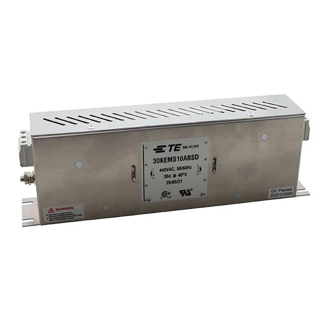 This is manufactured by TE Connectivity Corcom Filters. The manufacturer part number is 30KEMS10ABSD. The product has 440v AC voltage rating. It is assigned with possible HTSUS value of 8548.00.0000. The product is rohs3 compliant. Moreover, it has terminal block terminal style. Features a 30 a current in A. The product has -25°c ~ 85°c operating temperature range. It is approved by csa, ul. In addition, it is reach affected. The product is widely employed in general purpose. The product is available in single stage configuration. It is shipped in box. Its typical moisture sensitivity level is not applicable. The filter is a three phase (delta) type with excellent features. It has a long 10 weeks standard lead time. The product is available in chassis mount configuration. The product kem-bs, is a highly preferred choice for users. Features an operating frequency of 50/60hz. Moreover, it corresponds to 30kems10, a base product number of the product. The product is designated with the ear99 code number