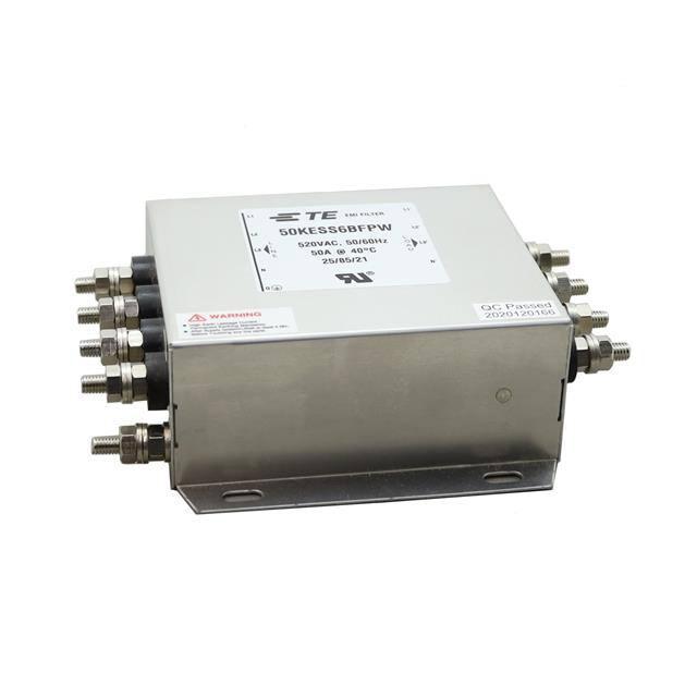 This is manufactured by TE Connectivity Corcom Filters. The manufacturer part number is 50KESS6BFPW. The product has 520v AC voltage rating. It is assigned with possible HTSUS value of 8548.00.0000. The product is rohs3 compliant. Moreover, it has threaded post (m6) terminal style. Features a 52 a current in A. The product has -25°c ~ 85°c operating temperature range. It is approved by csa, ul. In addition, it is reach unaffected. The product is widely employed in general purpose. The product is available in single stage configuration. It is shipped in box. Its typical moisture sensitivity level is not applicable. The filter is a three phase (wye) type with excellent features. It has a long 10 weeks standard lead time. The product is available in chassis mount configuration. The product kes, is a highly preferred choice for users. Features an operating frequency of 50/60hz. Moreover, it corresponds to 50kess6b, a base product number of the product. The product is designated with the ear99 code number