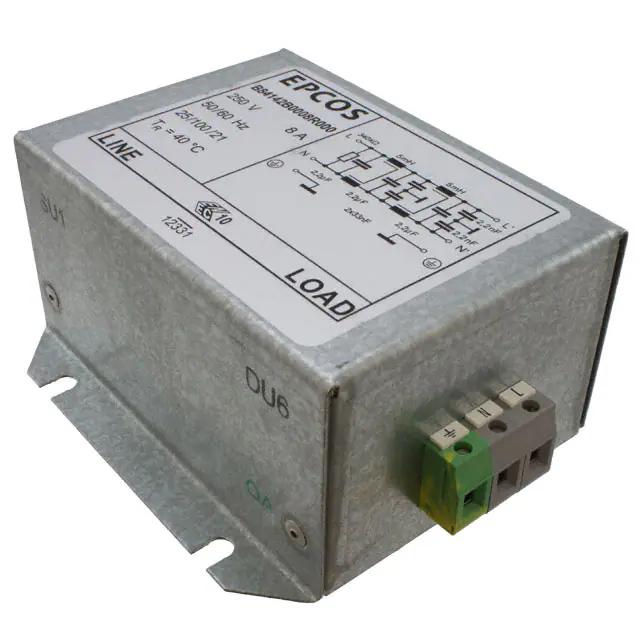 This is manufactured by EPCOS - TDK Electronics. The manufacturer part number is B84142B0008R000. The product has 250v AC voltage rating. It is assigned with possible HTSUS value of 8548.00.0000. The product is rohs3 compliant. Moreover, it has terminal block terminal style. Features a 8 a current in A. The product has -25°c ~ 100°c operating temperature range. It is approved by enec. In addition, it is reach affected. The product is widely employed in general purpose. The product is available in two stage configuration. It is shipped in tray. Retains 250v DC rated voltage. Its typical moisture sensitivity level is 1 (unlimited). The filter is a single phase type with excellent features. It has a long 36 weeks standard lead time. The product is available in chassis mount configuration. The product b84142b, is a highly preferred choice for users. Features an operating frequency of 50/60hz. The product is designated with the ear99 code number